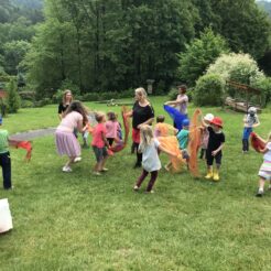 V úterý spojily svoje síly paní učitelky hudebních nauk Mgr. Blanka Jíravová a Mgr. Kateřina Venclová, DiS. a přichystaly dětem zábavnou hru s otázkami z hudební nauky. Po krátkém deštíku…